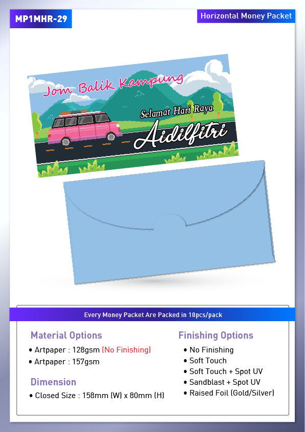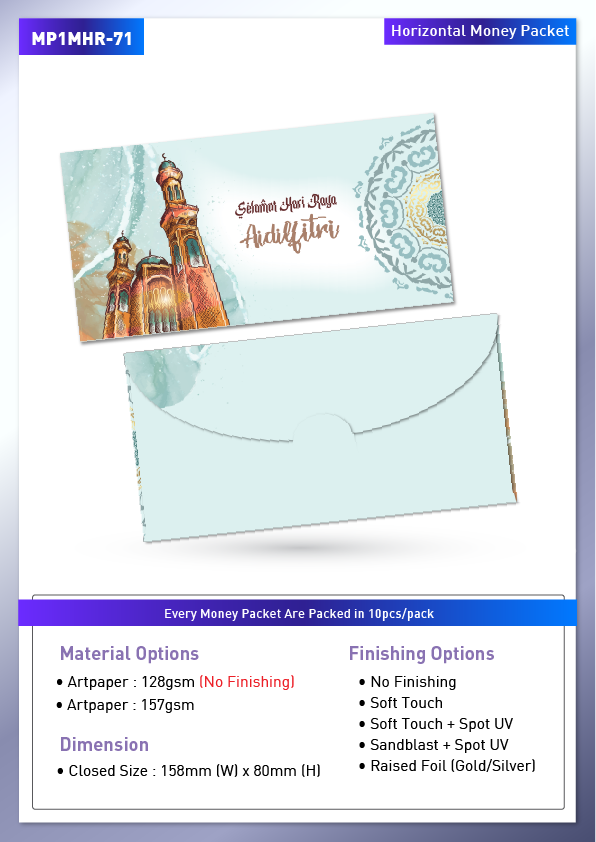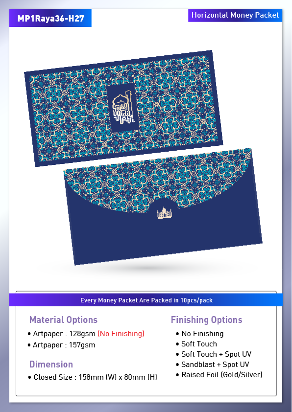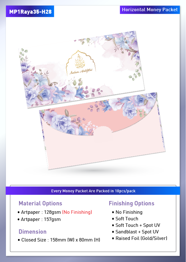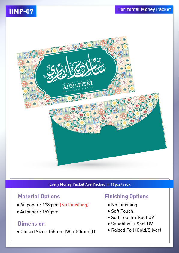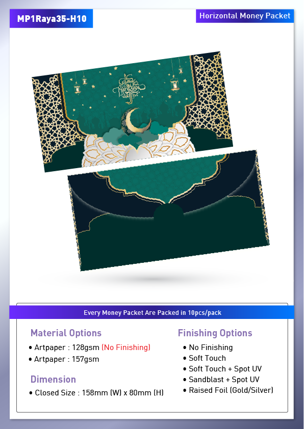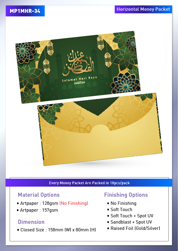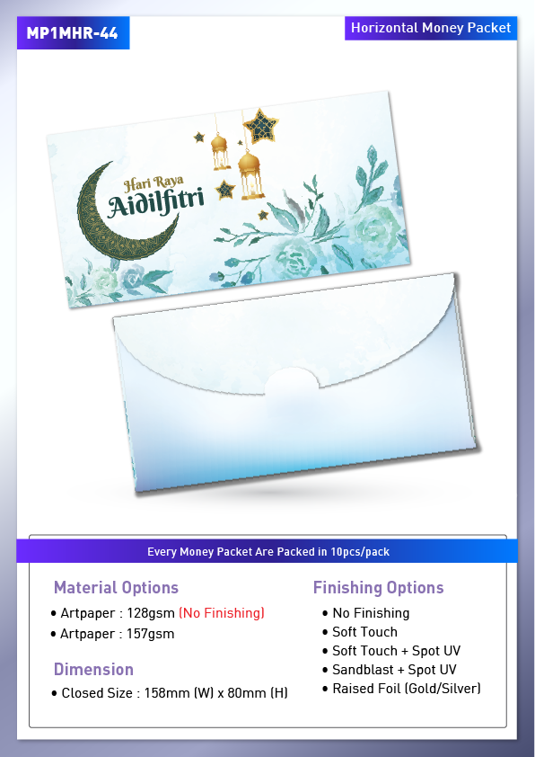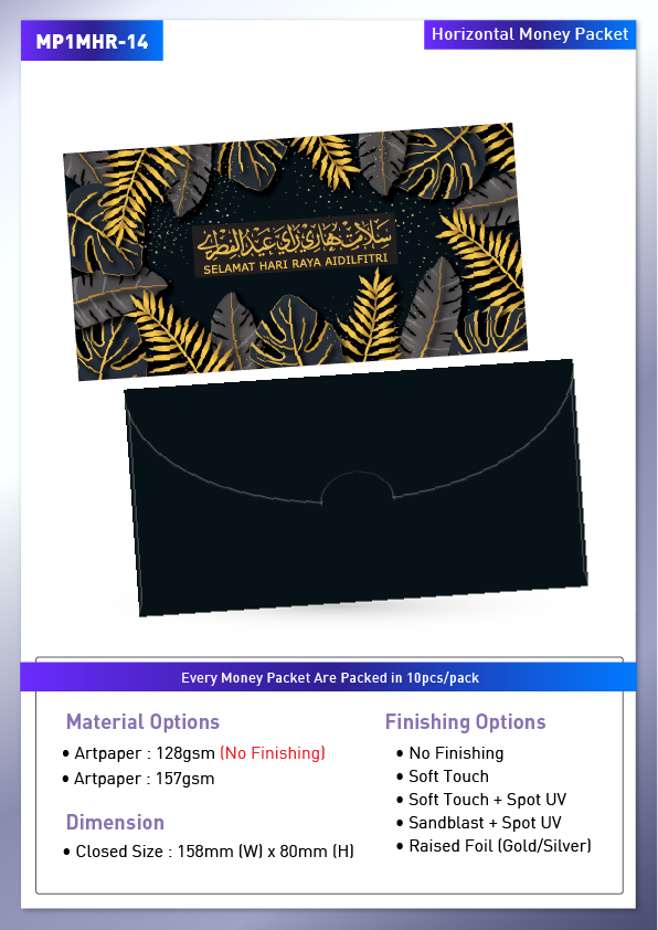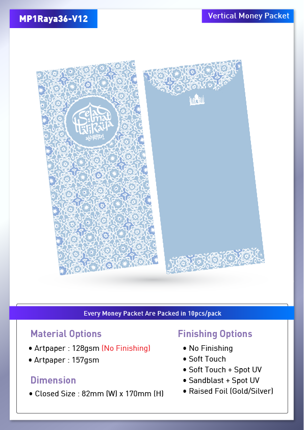 “Discover our exclusive Sampul Raya 2026 collection, featuring elegant and festive designs perfect for gifting during Hari Raya. Choose from our beautifully curated design collection and simply add your logo, or provide your own custom design for us to print for a truly personalized touch. Ideal for both corporate and personal use, our premium-quality money packets make every gift memorable this festive season.”