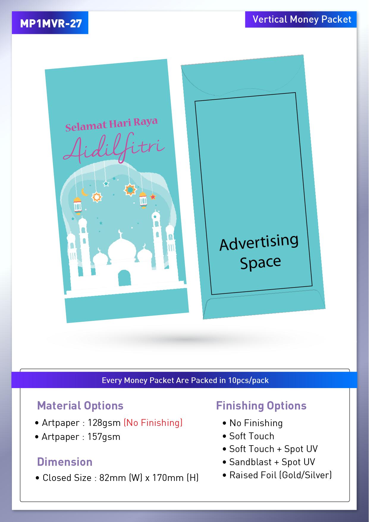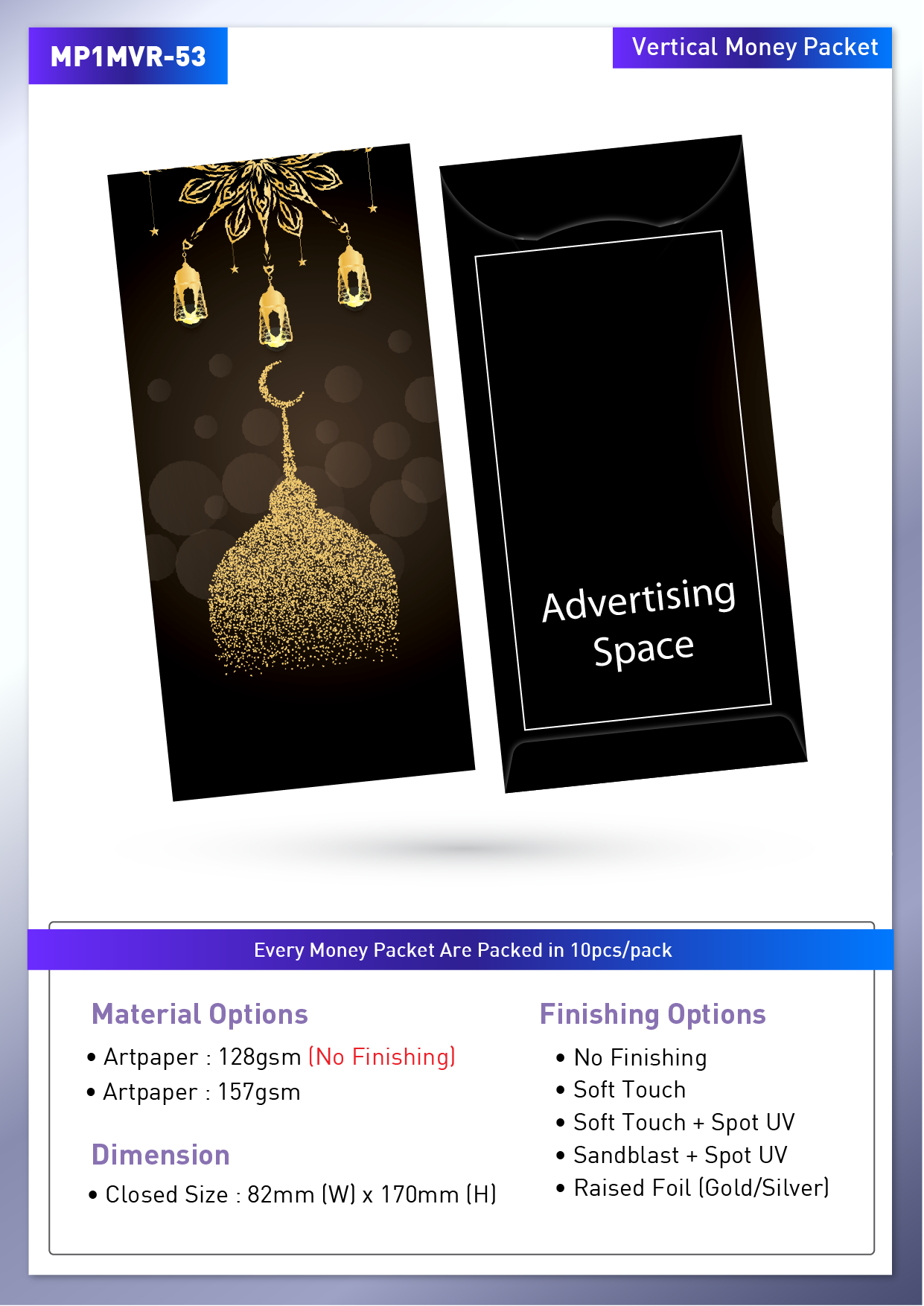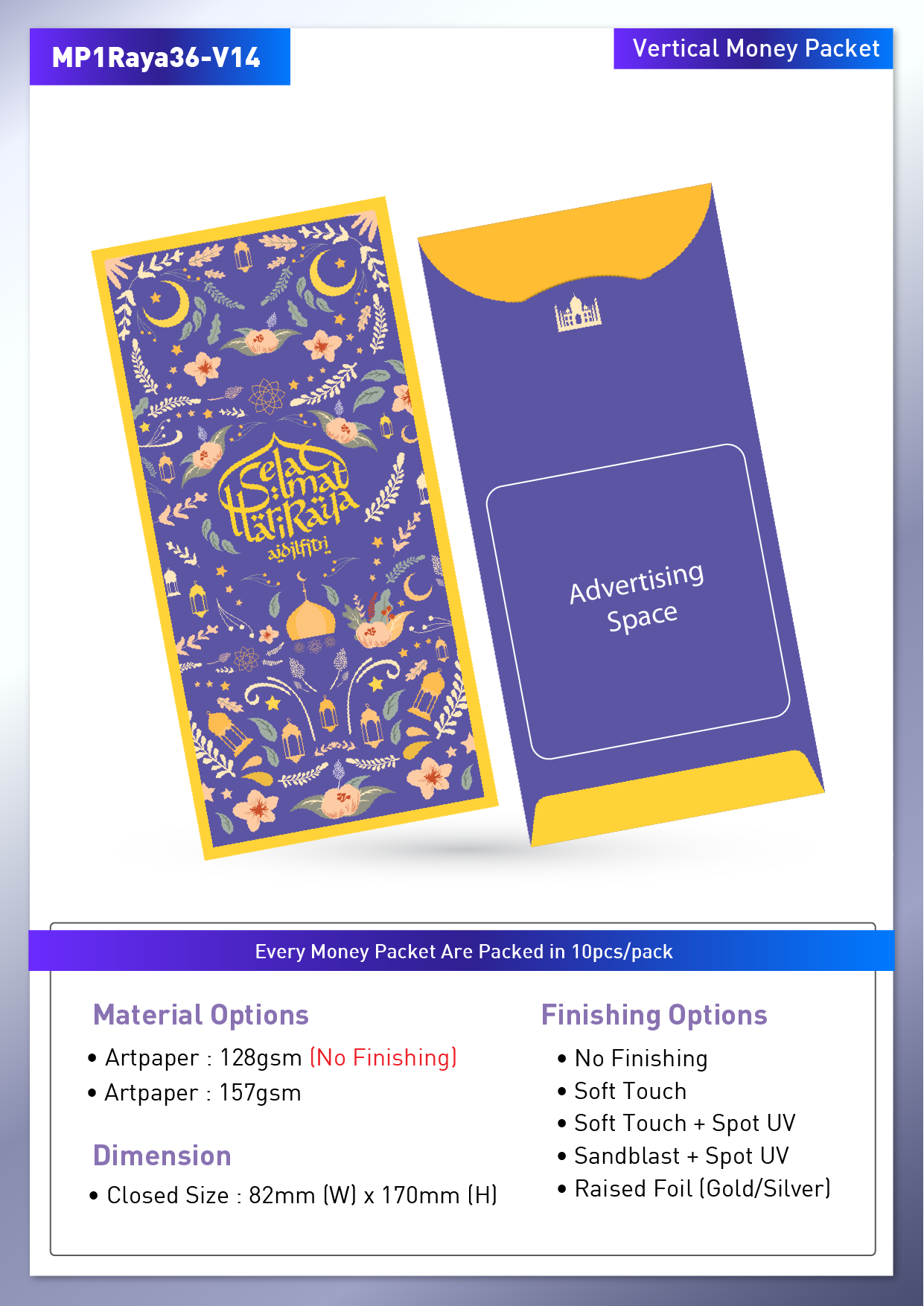 “Discover our exclusive Sampul Raya 2026 collection, featuring elegant and festive designs perfect for gifting during Hari Raya. Choose from our beautifully curated design collection and simply add your logo, or provide your own custom design for us to print for a truly personalized touch. Ideal for both corporate and personal use, our premium-quality money packets make every gift memorable this festive season.”