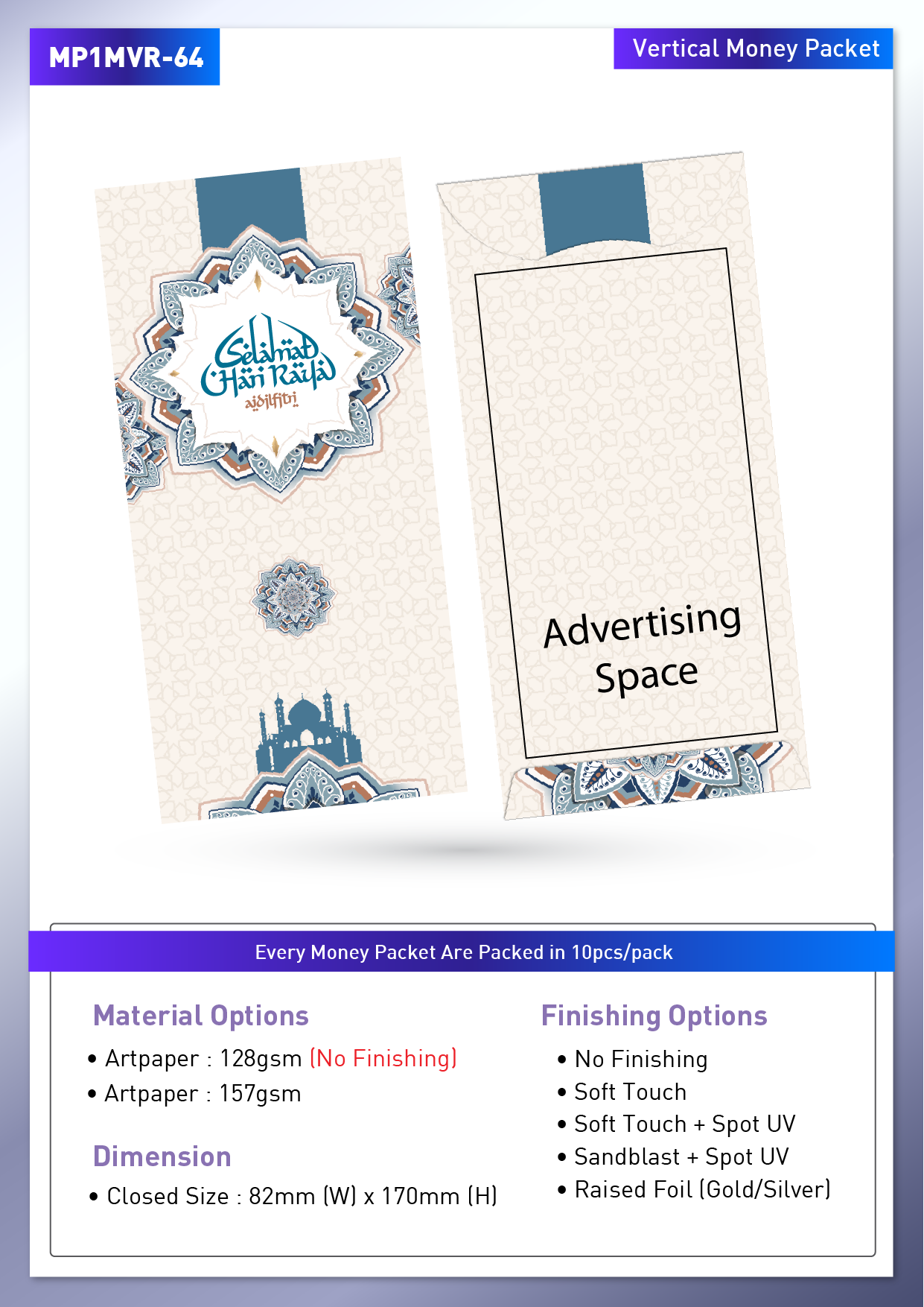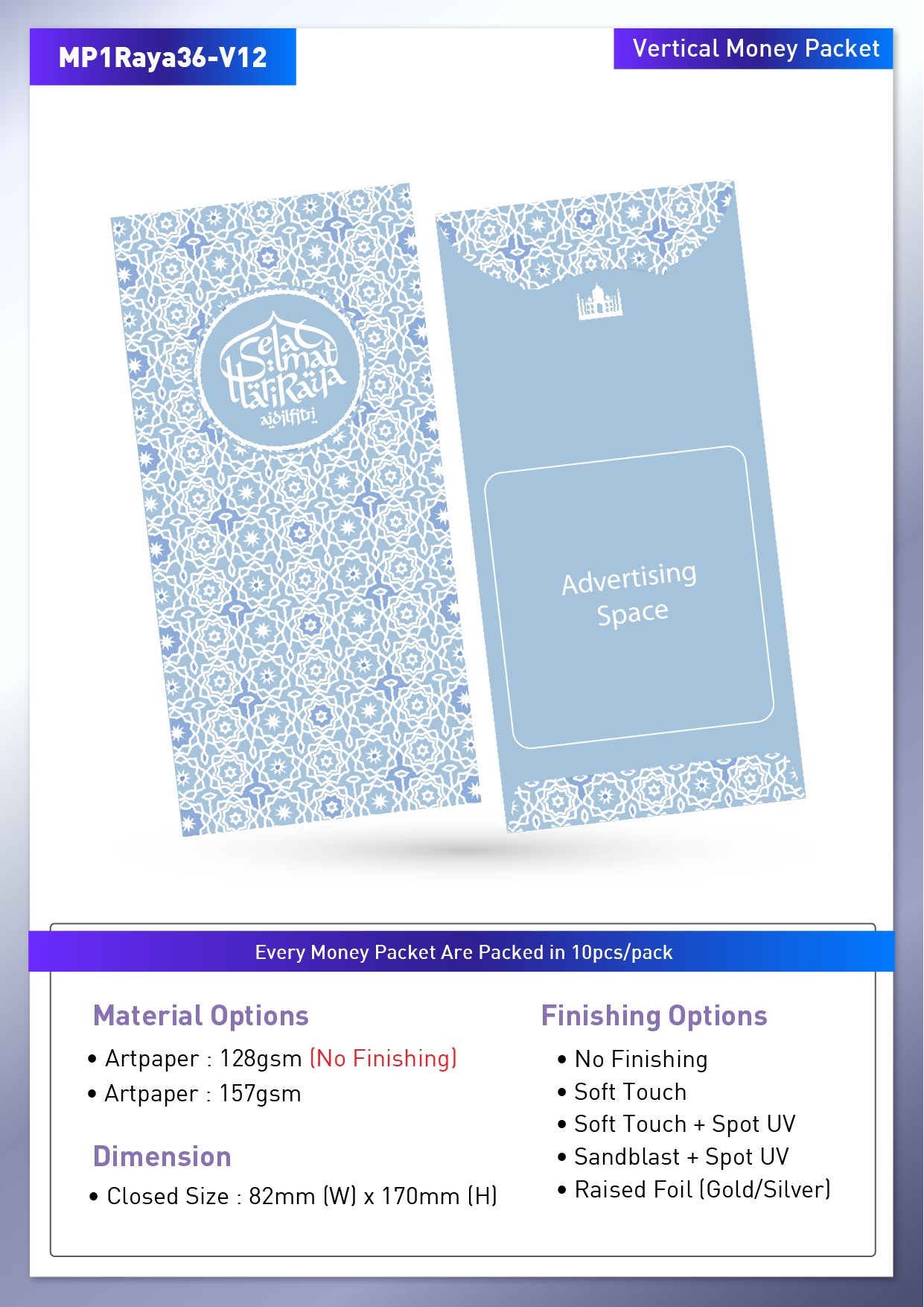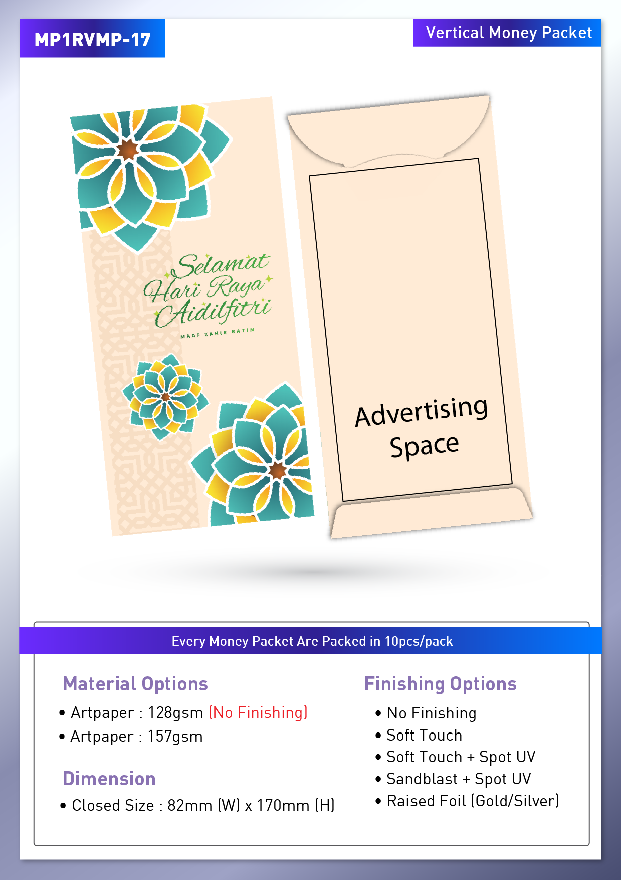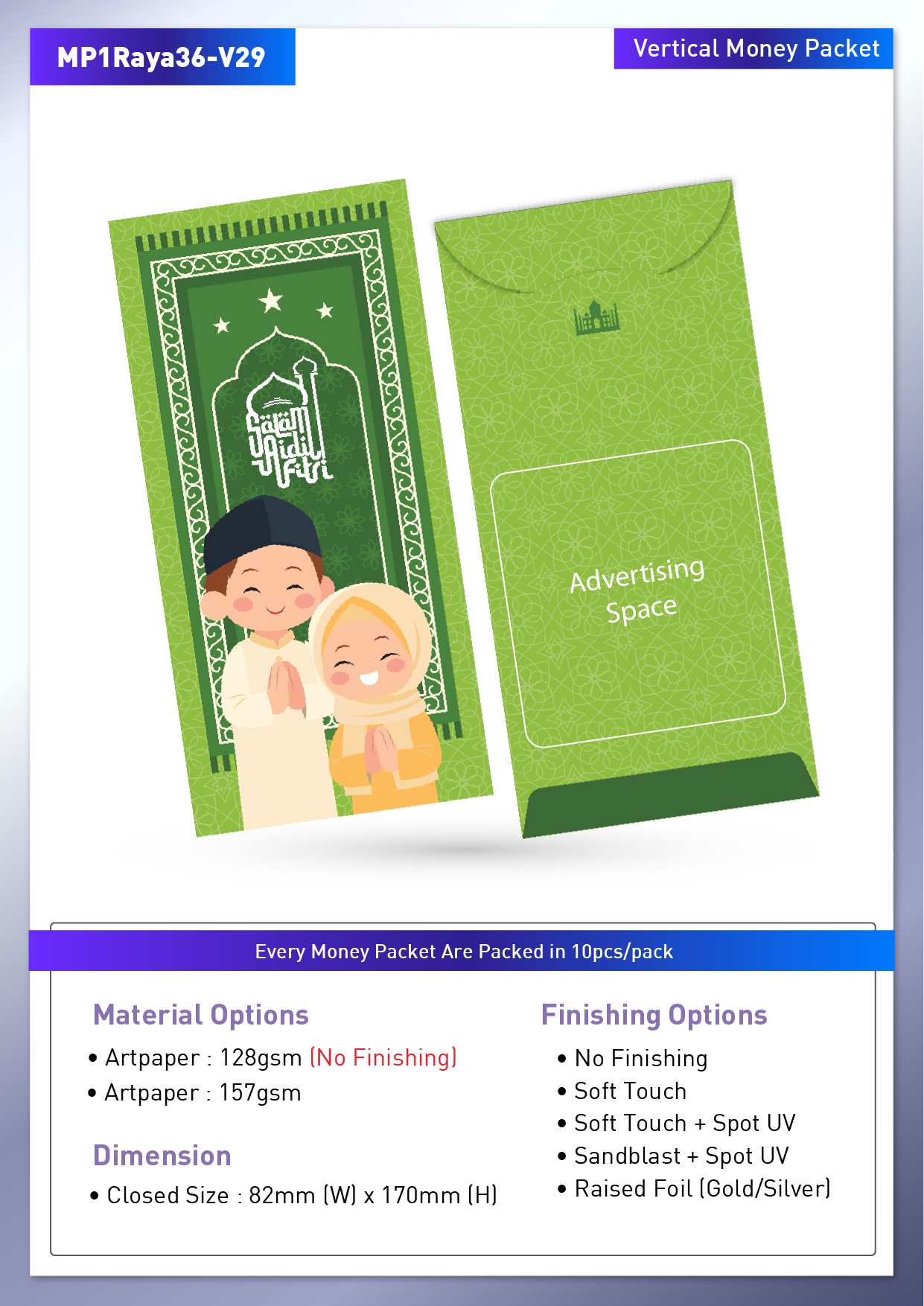 “Discover our exclusive Sampul Raya 2026 collection, featuring elegant and festive designs perfect for gifting during Hari Raya. Choose from our beautifully curated design collection and simply add your logo, or provide your own custom design for us to print for a truly personalized touch. Ideal for both corporate and personal use, our premium-quality money packets make every gift memorable this festive season.”